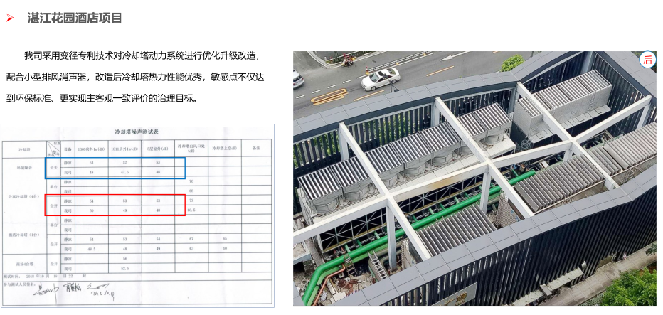 當前位置:特菱首頁 > 冷卻塔降噪 > 冷卻塔降噪案例 > 湛江花園酒店項目